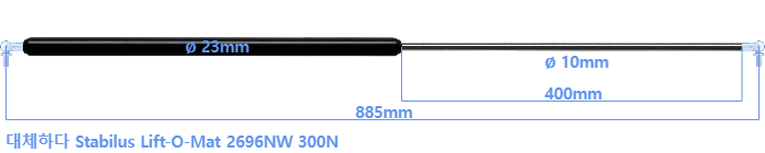 대체 가스스프링의 튜브의 지름은 22mm 대신 23mm 입니다.