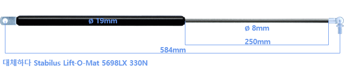 • 대체 가스스프링의 튜브의 지름은 18mm 대신 19mm 입니다.