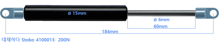 Stobo 4100013- 200 뉴턴 의 대체 가스스프링. 아일렛의 두께는 3mm이고 구멍 직경은 6.1mm입니다. 브랜드: HAHN, 스타빌루스