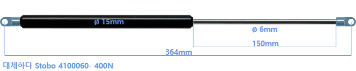 Stobo 4100060- 400 뉴턴 의 대체 가스스프링. 아일렛의 두께는 3mm이고 구멍 직경은 6.1mm입니다. 브랜드: HAHN, 스타빌루스