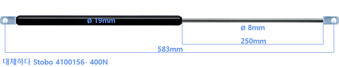 Stobo 4100156- 400 뉴턴 의 대체 가스스프링. 아일렛의 두께는 10mm이고 구멍 직경은 8.1mm입니다. 브랜드: HAHN, 스타빌루스