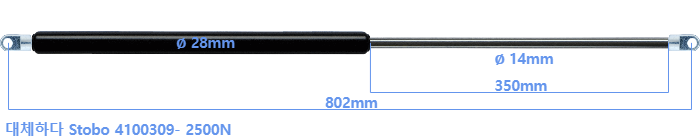 Stobo 4100309- 2500 뉴턴 의 대체 가스스프링. 아일렛의 두께는 10mm이고 구멍 직경은 10.1mm입니다. 브랜드: HAHN, 스타빌루스