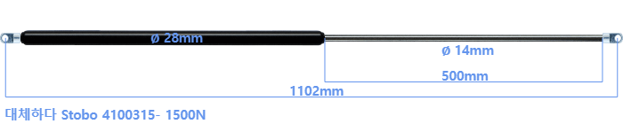 Stobo 4100315- 1500 뉴턴 의 대체 가스스프링. 아일렛의 두께는 10mm이고 구멍 직경은 10.1mm입니다. 브랜드: HAHN, 스타빌루스