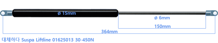 Suspa Liftline 01625013 30-450 뉴턴 의 대체 가스스프링. 아일렛의 두께는 3mm이고 구멍 직경은 6.1mm입니다. 브랜드: HAHN, 스타빌루스