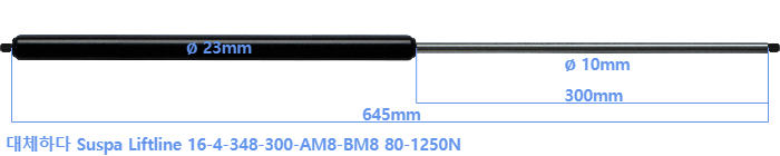 대체 가스스프링의 튜브의 지름은 22mm 대신 23mm 입니다.