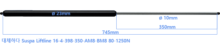 대체 가스스프링의 튜브의 지름은 22mm 대신 23mm 입니다.