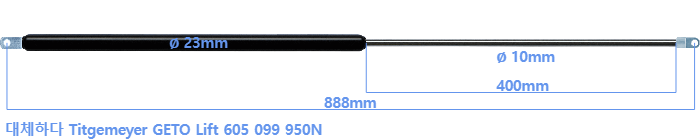 • 대체 가스스프링의 튜브의 지름은 22mm 대신 23mm 입니다.