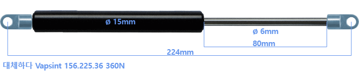 이 대체 가스 스프링의 두께가 3mm인 아일렛은 원래보다 짧을 수 있습니다. 아일렛의 이 부분은 방해가 되지 않습니다.