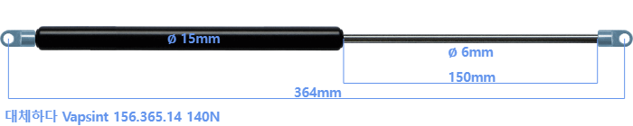 Vapsint 156.365.14 140 뉴턴 의 대체 가스스프링. 아일렛의 두께는 3mm이고 구멍 직경은 6.1mm입니다. 브랜드: HAHN, 스타빌루스