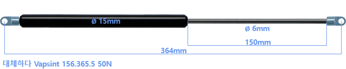 Vapsint 156.365.5 50 뉴턴 의 대체 가스스프링. 아일렛의 두께는 3mm이고 구멍 직경은 6.1mm입니다. 브랜드: HAHN, 스타빌루스